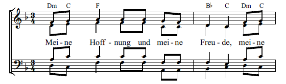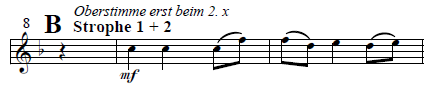 Partitur-, Chorpartitur-, Instrumentalstimme- und Veeh-Harfen/Tischharfen-Notation.